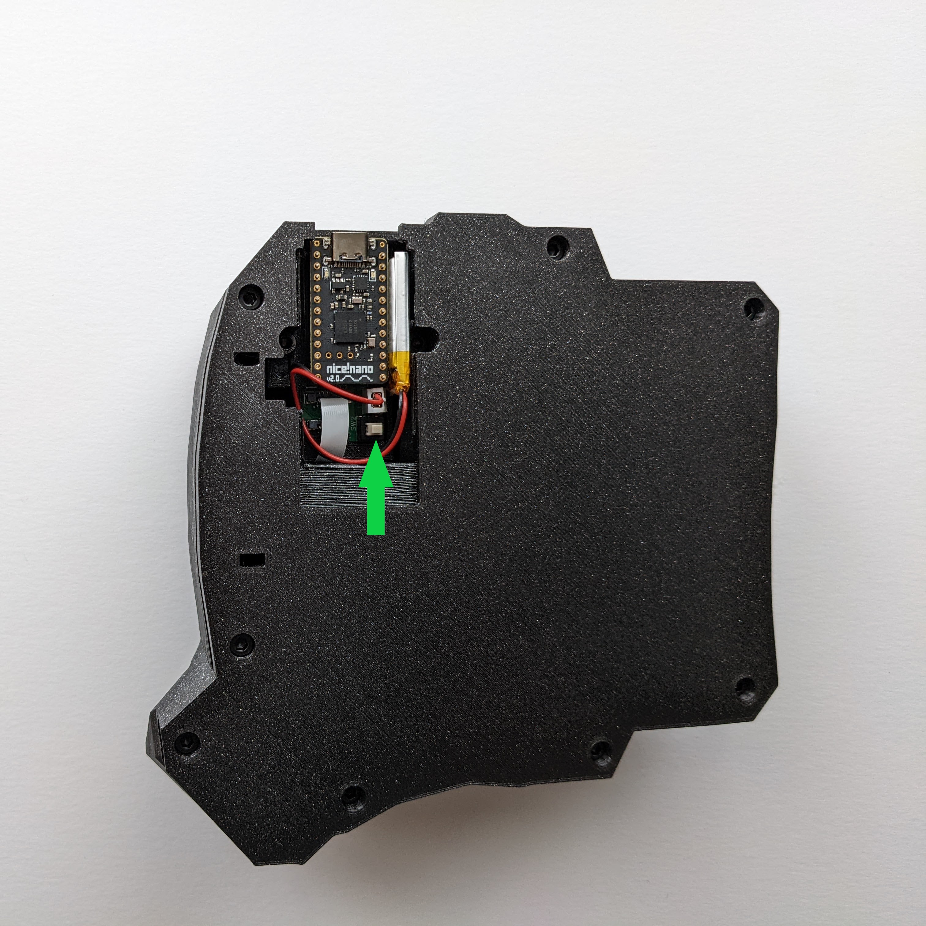 <figure><img src="https://2819629702-files.gitbook.io/~/files/v0/b/gitbook-x-prod.appspot.com/o/spaces%2FvA8NzxdSkQhocfM8Oh6W%2Fuploads%2F5JFYkh27fVOh5KL5XHae%2Ftaikohub-dactyl-manuform-keyboard-legend-2.jpg?alt=media&#x26;token=ac974920-49b2-4751-8683-d292f54ec39a" alt=""><figcaption><p>Figure 5.3 The green arrow points to the on/off switch.</p></figcaption></figure>